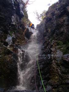 Deixem el cotxe al Balneari poc després de Thues entre Bains. Un camí ascendent ens du al barranc. Barranc força alterat i brut per les captacions del Balneari. Ràpels de 12m, 4m., 8m. i ens fiquem a una poua a 30º on fem una pausa. Rapéls de 6m, 15m, 8m i fem cap sota la via del tren groc.Surgència a 50º. Ràpel de 12m i de 35m i fem cap a la carretera.