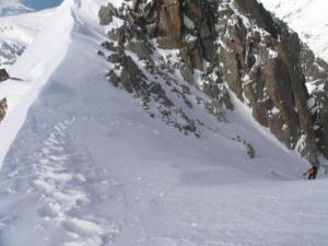 Salimos del corredor por arriba a las 10 h, más o menos, y encontramos nieve ya blanda en la arista y los pasos de mixto, ultimo tramo algo peligroso por esto.