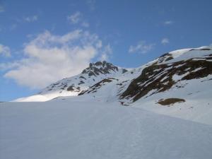 El jueves 1 de mayo hicimos este pico vecino del midi. Partimos desde el parking de aneou y despues de 10 minutos de porteo llego la hora de ponerse los esquies. Encontramos buena nieve gracias a un buen rehielo nocturno. En todo el ascenso casi no vimos el sol, aunque el tiempo era claro las nuves no hacian mas que pasar y pasar tapandolo.