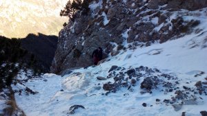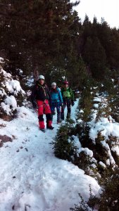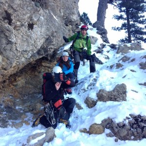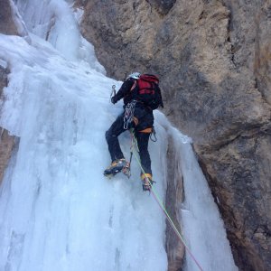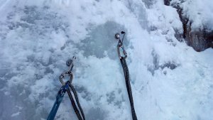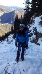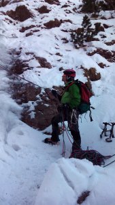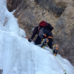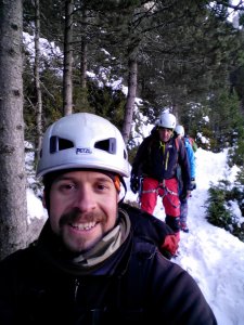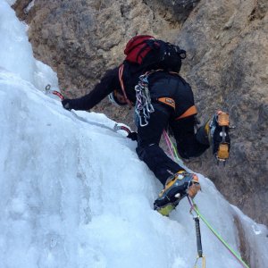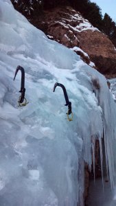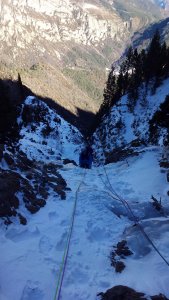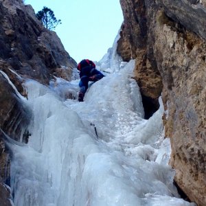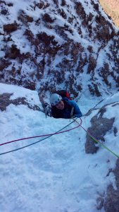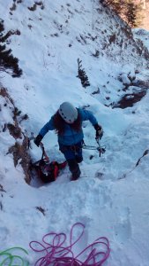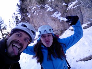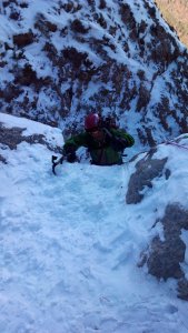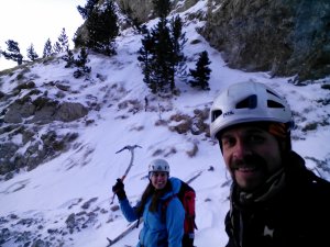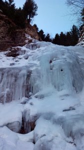 Al final nos decidimos a subir por los resaltes de la Verdet hasta llegar a la Columna. Aunque algunos resaltes estaban algo finos, en general condiciones más que acceptables para escalar y la columna... jejeje ... le tenia taaantas ganas de hacerla entera de primero.... jejeje y después de tantos años que no iba de primero en hielo..... no estamos tan mal jejejeje