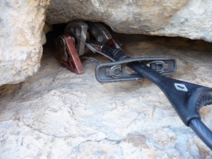 Por suerte hay de todo, puentes, parabolts caseros, clavos... algunos son de "no t'hi fixis!!!"