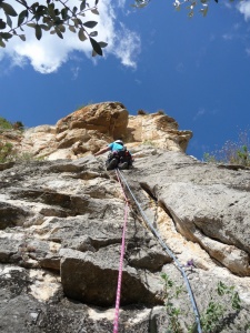 Loybcn en el segundo largo, de acero en acero. Hay parabolts con chapas caseras, clavos y puente de roca
