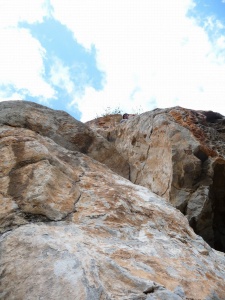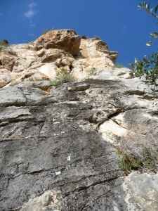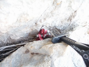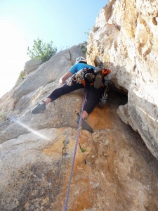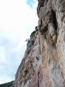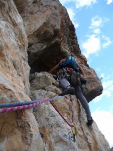 Después de superar el techo flanqueamos hacia la izquierda hacia la fisura quedando por encima de la R2