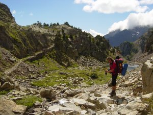 Llegando al ibón bajo de Arriel.