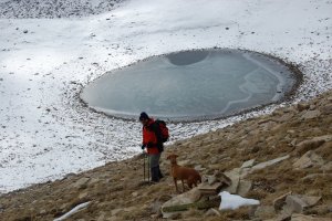 I ja en la cadena del circ d'Ulldeter, més enllà del Coll de la Geganta, ens anem acostant al Pic de la Dona, al fons i per moments més amenaçat pels núvols.