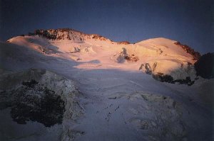 OOOOOHHHH!!! Els Ecrins amb les primeres llums del dia. No us perdeu la filera de formigutes (gent) que s´enfila muntanya amunt.