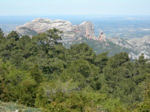 Les Roques de Benet, vistes des dels Ginjolers, prop del coll del Camp