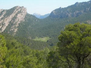 Pujant el coll de Xertó, direcció al riu de les Valls, i les Roques de Benet, al fons