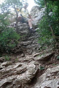 Sendero do Turmo. En la parte inferior derecha el hito que nos indica el camino, sin él hubiera sido difícil en contrarlo.