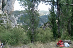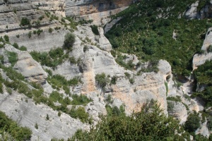 Raisen parte superior y el caminito aéreo por la faja.(se distingue la copa de los chopos del inicio del Raisen)