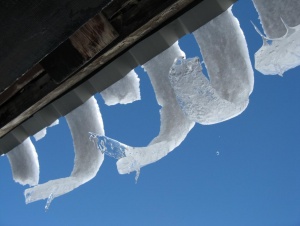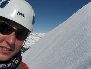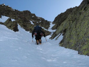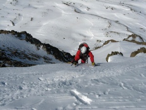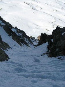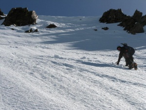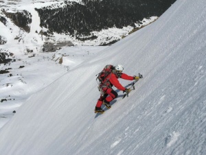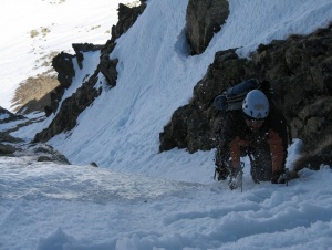 Primer resalte con hielo un poco precario, por suerte no es muy pendiente, 45º más o menos