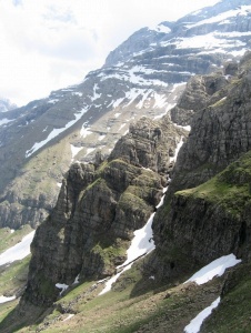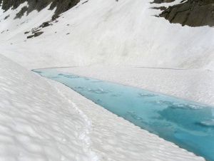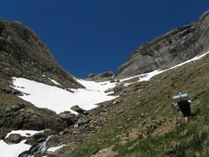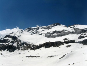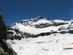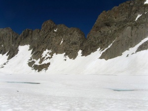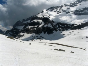 Brecha de Tucarroya, el lago de Marboré aun está helado y cubierto de nieve