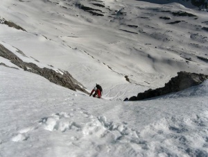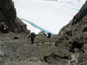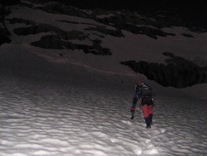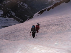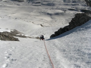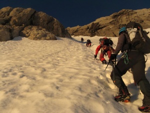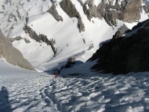 Pendientes del segundo glaciar, justo antes del resaltillo de hielo y el flanqueo