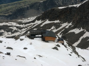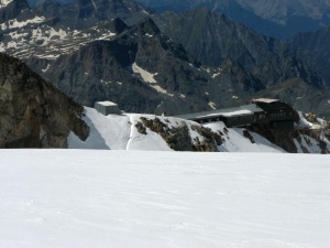 Refugio Mantova visto desde el balcón de Gnifetti