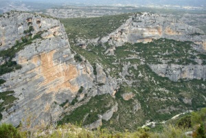 Vista sobre le rio Vero y a su izquierda el Tozal del Vero con su "Visera" más abajo.