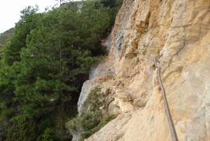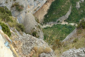 Paso Len. Aquí se puede apreciar la caida que hay. A la izquierda el anclaje de la sirga y al fondo el rio Vero.
