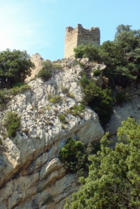 El castillo (a la derecha) esta en un cortado sobre el Balcés.