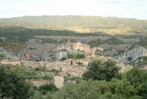 Alquezar. Vista poco usual desde la pista a de San Pelegrín.
