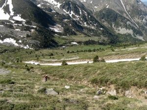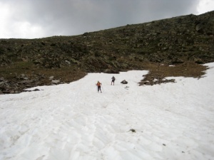 Bajando por el único nevero que encontramos