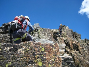 Progresando hacia la cima por pasos ya sin dificultad