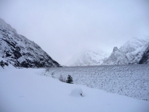 Nieve muy humeda, hacia unos zuecos enormes en las focas... Madveras ahi al fondo arrastarndose