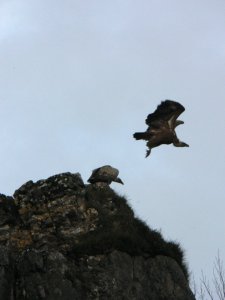 Buitres vigilando la salida del paso de Atxuri en Gorbeia.