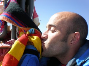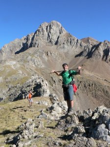 Borja, de Bilbao y del Athletic de toda la vida, besando la bandera catalana y la bufanda del barca en la cima de la Pica de Estats.