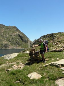 Kairn en el estany de Certascan, el mayor de todo el pirineo.