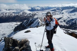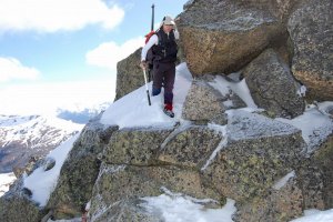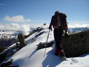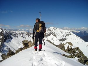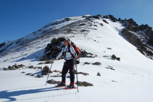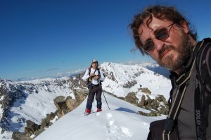 Antonio al coll. Darrera seu, el llom cap al cim.