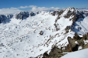 Des de la carretera d'Envalira, el circ dels Pessons, amb l'Alt del Cubil justament a la dreta.