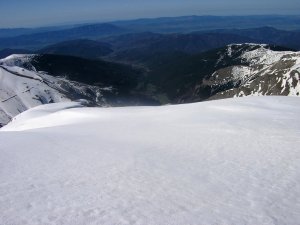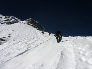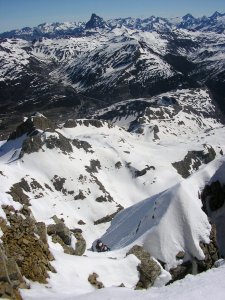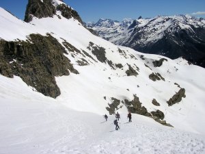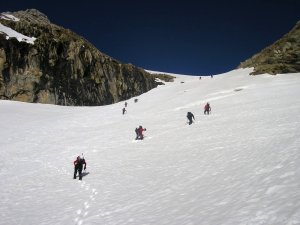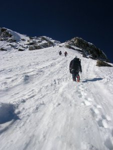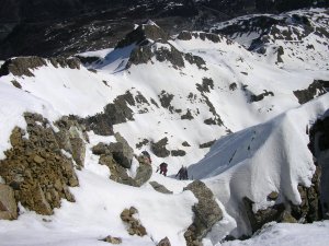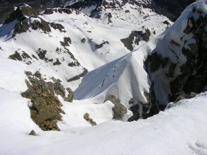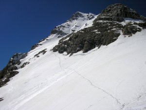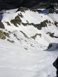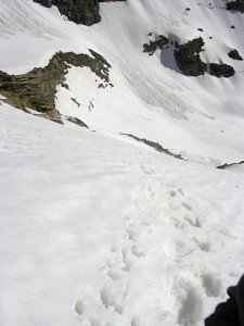 Enla bajada desde el collado se aprecia la huella de nuestra subida