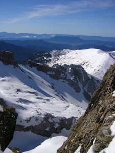En segundo plano, circo de Ip, con la Pala de Ip, Collarada y asomándose el Punta Escarra. El Perdido al fondo.