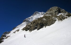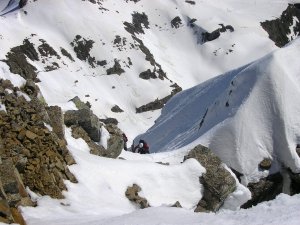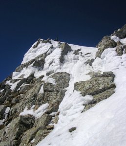 La cumbre desde el final del corredor. Ya sólo quedan unos pasos (con cuidadín)