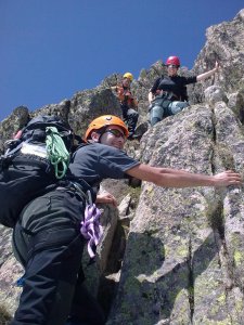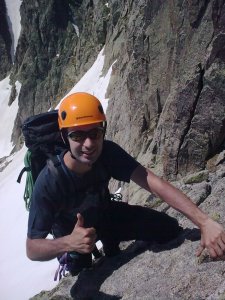 David llegando a la cima. Abajo el Estaby de Malavesina.
