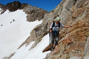 Mati sonríe en este flanqueo un poquín pestoso, total para evitar el nevero empinado...
