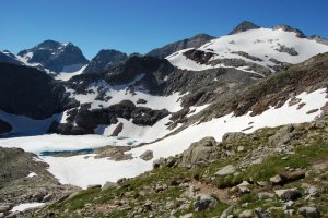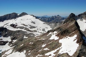 Hacia el sur-sureste, queda la imponente cuenca de Oô, con Perdiguero a la izquierda y Baquo a la derecha.