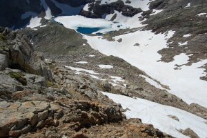 Al llegar al amplio collado, giramos completamente a la derecha para encarar el final del pico por su vertiente sur: aquí la tenemos.