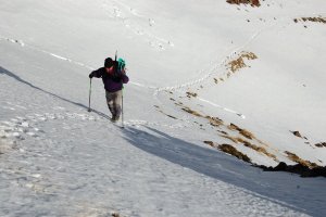...però en qualsevol cas la neu es mostra suficientment dura com per tirar de crampons en els sectors més drets, com aquest.