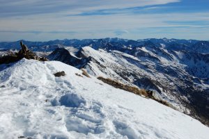 ... que aquí gairebé hem assolit (2.773 m.), amb la cadena sud i el mateix pic al fons. El vent ja ens tortura.