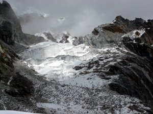 Glaciar al otro lado del Chola con el Lobuche entre nubes