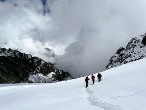 Cara norte del Taboche entre nubes