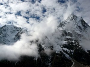 Las nortes del Taboche y el Cholatse enredadas en nubes