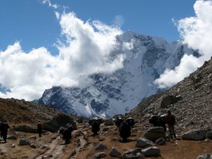 Camino de Dingboche, Kangtega entre nubes