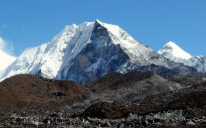 Nuptse sobre el glaciar del Khumbu