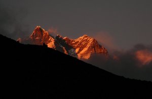 Las tres cimas del Lhotse con la última luz de regreso a Dingboche