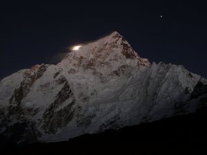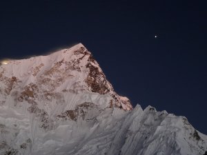 Nuptse iluminado por Venus y el fulgor lunar