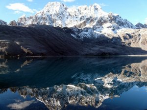 Reflejo del Pharilapche en el lago Dudh Pokhari