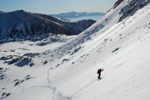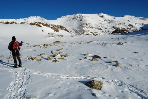 Remuntant el diumenge a la tarda per la Vall de Meranges cap al Circ d'Engorgs. Neu a partir de un 2.000-2.100, i encara irregular.