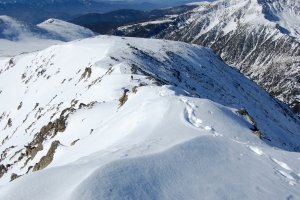 La cadena fins al Calm Colomer. Neu pastosa i dolentota, per la qual tampoc es ajuden gaire les raquetes.