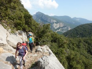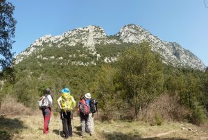 De camí a Santa Maria d'Escales tenim sempre a vista la vessant occidental de la Cresta de Ferran.